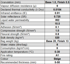 • Coat 2 – Lime thermal finishing coat, featuring a granulation of 0.5–0.7 mm, provides excellent heat reflectivity, minimising heat loss and enhancing year-round indoor comfort.